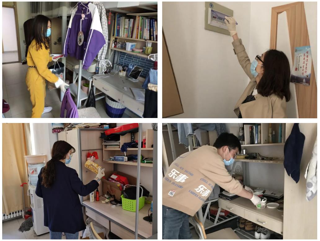 本次宿舍检查工作以双校区同步推进的方式开展,涉及北洋园校区格园、修园、齐园、治园、平园和卫津路校区鹏翔公寓、七里台/六里台等学生公寓,共计1129间学生宿舍。教师们共分9个小组,各组成员与物业工作人员对所涉及的学生宿舍逐间排查,着重关注公共区域卫生消杀是否到位、公共卫生用品是否齐全;对部分宿舍采取通风等措施,消除卫生和安全隐患;对卫生问题严重的宿舍进行现场清理并消毒,杜绝蚊虫细菌滋生,为返校学生提供良好、安全的居住环境。