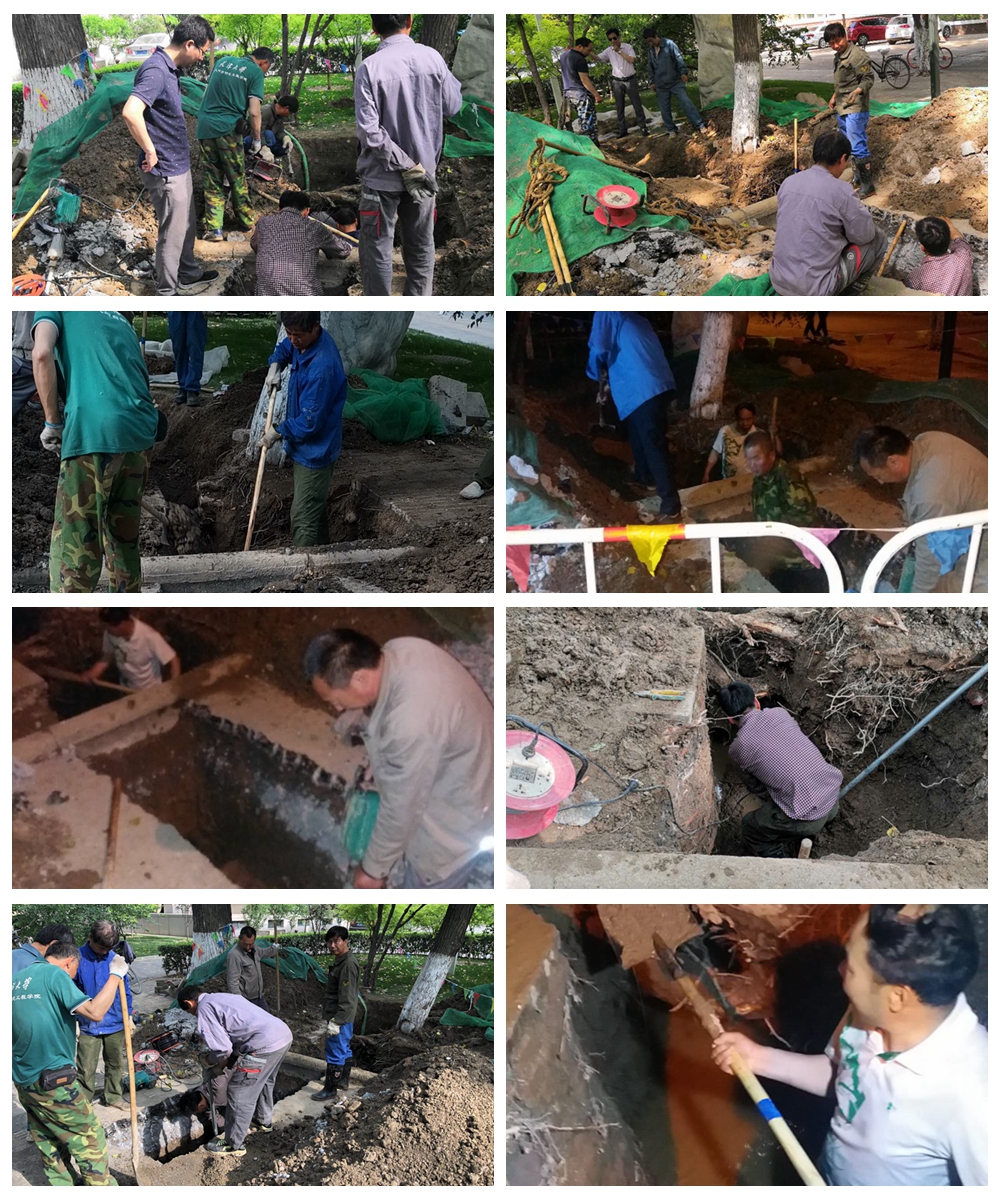 维修管理科接到报修信息后,立即安排紧急抢修工作。现场勘察发现管道开裂长达6米,管道埋深1.5米,且管道周边布置有其他管道、树根、路牙等,开挖及施工难度很大。维修管理科全力抢修,组织夜间施工、积极协调材料厂家,确保材料及时送达,经过20多个小时的不懈努力,克服重重困难,成功于5月16日下午完成管道维修,恢复通水。