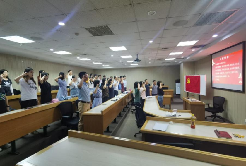 为庆祝中国共产党成立100周年,现场全体师生党员一起重温入党誓词。组织与战略管理系支部书记张红娟带领现场全体师生党员一起高举右拳,面向鲜红的党旗庄严宣誓。铿锵有力、庄严神圣的誓词再次强烈震撼着在场的每一位党员。通过重温入党誓词,师生党员再一次重温入党誓词时的庄严承诺和坚定决心,在党旗下接受心灵的净化和洗礼,牢记共产党员的责任和使命。