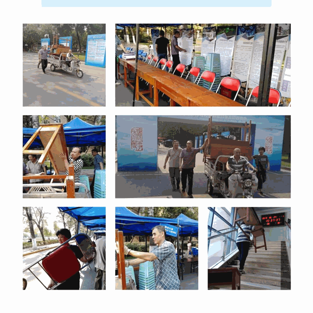 6月24日当天,烈日炎炎,一早气温就接近了30度,物业服务人员早早来到学校配合学院进行贴心服务。他们帮学院布置咨询会服务点位,大家抬桌子、搬椅子、运送展台、搭建帐篷、搬运资料……从早晨一直忙到咨询会结束。会后员工们又帮助学院整理运送全套物资,清整打扫环境,在整个过程中大家是默默地、无偿地贴心服务,每个人的脸被晒得通红,衣服被汗水浸透,但员工们团结一致、齐心协力配合学院圆满完成任务,大家的辛勤付出得到了学院的好评。