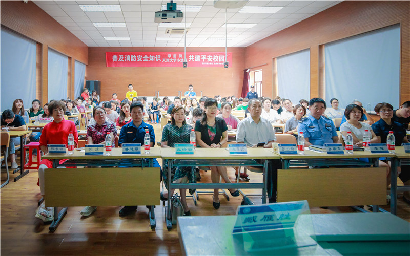 本站讯(通讯员 郑炎琼 董奕杉)为普及消防安全知识,增强附小、幼儿园、校医院的消防安全意识,提高防火、灭火及自我保护的能力,进一步强化校园消防安全管理责任。6月18日下午,小幼医工作部联合南开区学府街道办事处在天津大学附属小学电化教室举办“普及消防安全知识,共建平安校园”知识讲座活动。天津大学校长助理张力新、学府街党工委副书记王海云、学府街办事处副主任张儒文、学府街社区警务队副队长李强、南开区防火检查指导科科长臧雁胜、南开区消防救援支队政治办主任潘慧强、天津大学小幼医工作部部长、党委书记赵翠云、小幼医工作部副部长、党委副书记刘津、天津大学附属小学、幼儿园、校医院领导及小幼医消防安全员60余人出席了本次活动。