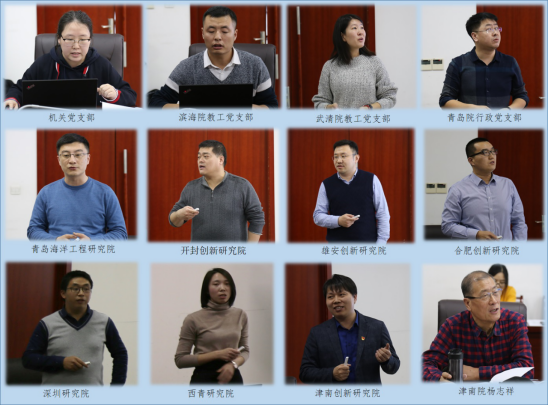区域院机关党支部,滨海院、武清院、青岛院教工党支部汇报了党支部2019年工作总结及2020年组织建设规划,各与会创新院汇报了2019年工作总结及2020年工作规划,工作汇报后,区域院副院长林漫群结合2018年2月区域院调研国内知名高校异地研究机构情况,介绍了创新发展研究院的定位、职责、目标及发展模式等,津南创新研究院常务副院长杨志祥结合自身工作经历,分享了做好创新发展研究院的心得体会及工作建议,青岛院理事长刘耀昌表示区域院要“抓大事、定规矩、派干部、争资源”,宏观管理定方向,明确发展目标与发展方向,强化选人用人,加强外派干部管理、关心与关爱,争取研究生资源与当地政府企业资源,全校协调整合科技成果,加快推进成果转化工作等。此外,与会人员还围绕校企合作、教育培训及研究生培养做了研讨交流。