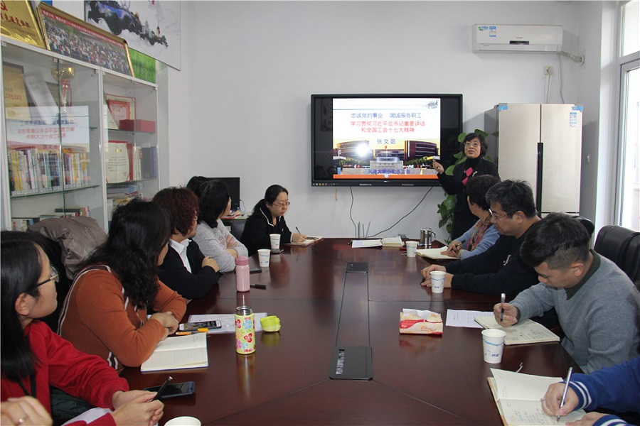 工会主席张文茹先做了“忠诚党的事业,竭诚服务职工”的报告,与参会人员一起共同学习习近平总书记重要讲话和全国工会十七大精神,希望3个基层单位工会专兼职干部带领全体教职工更好的在政治思想上与中央习近平总书记、与工会有关指示精神统一起来,坚定跟党走、听党话,为今后工会各项工作做更好的指导,走好工会发展之路,把主要精神贯彻落实到具体工作中去,切实做到忠诚党的事业,竭诚服务职工,不断开创小幼医工会工作新局面。