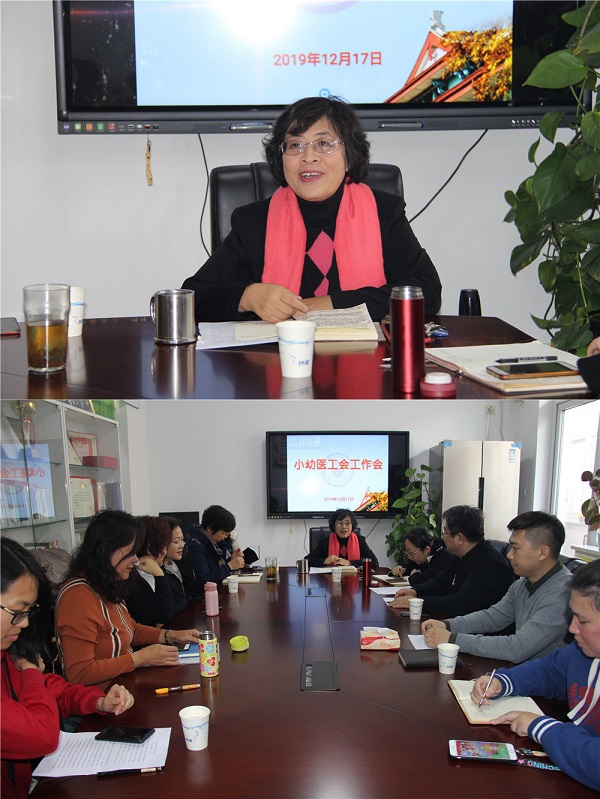 在听取了工会工作汇报后,小幼医党委书记赵翠云发表讲话:她充分肯定了小幼医工会所做的工作和取得的成绩,她说,小幼医工会、教代会、青年联谊会、女干部联谊会、读书会和职工之家简称“五会一家”作为小幼医的特色品牌,取得了一系列辉煌业绩,为小幼医文化建设、事业发展做出了很大贡献,特别是今年小幼医十年庆典部旗部徽部歌征集制作联欢等,付出辛苦努力,把工作做到了极致,大家充满智慧,不仅是小幼医事业的“稳压器”,而且是“助推器”。几年来,在工会带领下开展了一系列丰富多彩的活动,衷心感谢工会委员们和工会工作积极分子们的努力付出!同时,希望2020年小幼医工会在过去十年积淀基础上整装再出发,通过挖掘每个人的智慧,进一步丰富小幼医品牌,开拓更多更新途径,把工会工作做好,把五会一家工作做好,把小幼医推向一个新的高度!竭尽全力为师生服务,为建设中国特色、世界一流、天大品格社会主义大学做出应有的贡献。