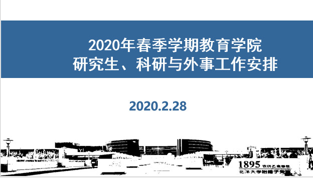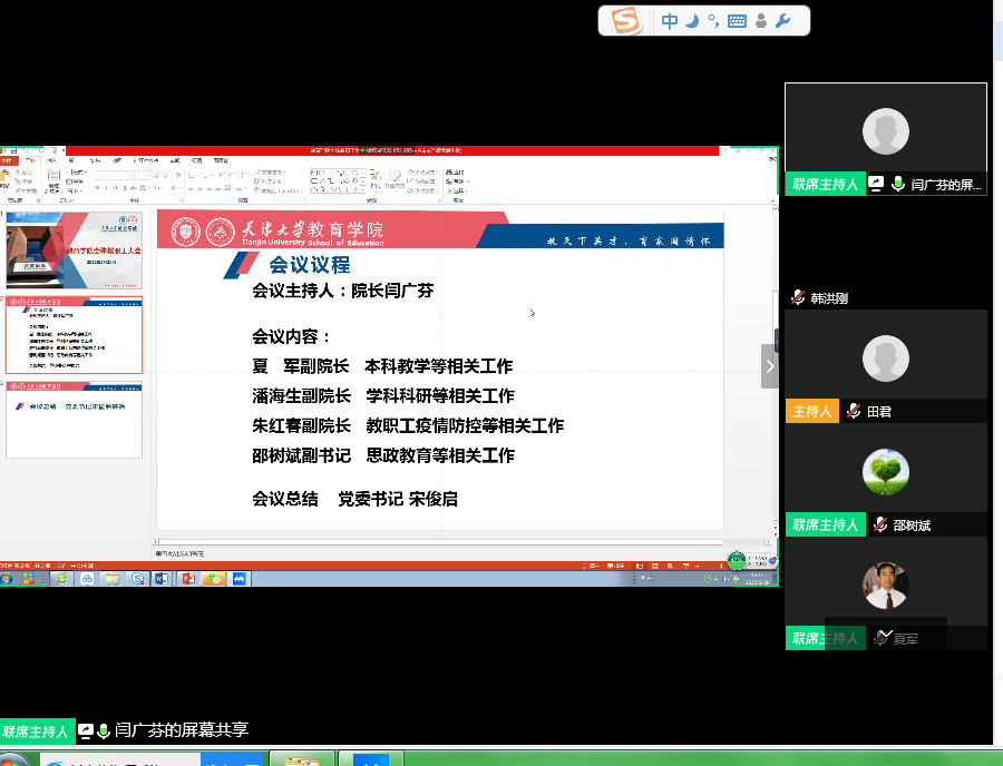 本站讯(通讯员 田君)2月28日下午,教育学院以在线会议的形式召开2019-2020学年春季学期全体教职工大会。院长闫广芬、党委书记宋俊启及学院领导班子成员和全体教职工参加,大会由院长闫广芬主持。