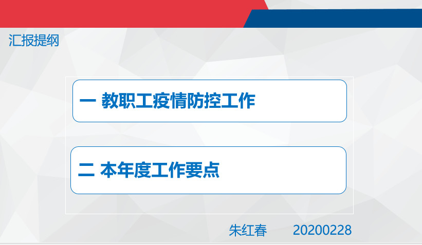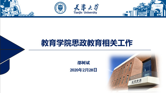 邵树斌副书记介绍了疫情防控期间学生思政教育工作,每日检测学生健康情况,组织学生开展线上活动和参加志愿服务。他介绍了2020年学生思政教育工作、宣传和工会工作要点。