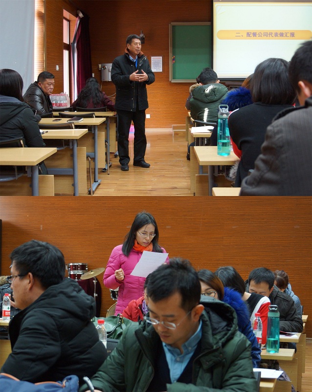 月坛集团分管领导从配餐的供货、制作流程、配送、以及食材选择等几方面向学校与家长做了汇报。