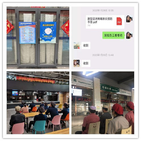 防疫知识培训。疫情发生之初,食堂管理科便收集整理新冠肺炎疫情防护的相关知识及防控措施并向全体工作员工宣传,要求全体员工按照学校要求及时上报防控信息,特别强调假期在岗员工要以最严防控方案,做好自身防护,做好食堂的安保、消毒工作。