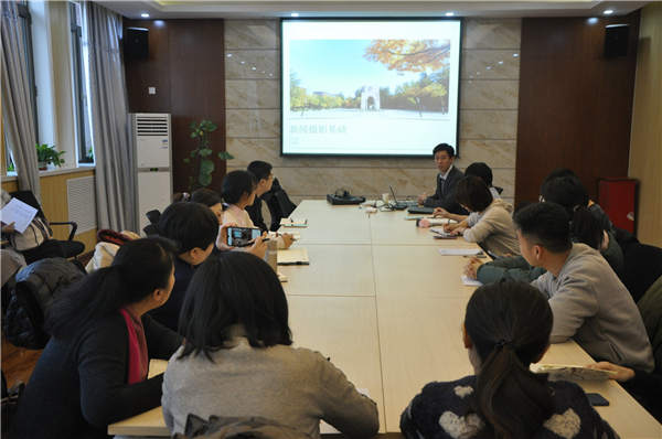 12月25日,宣传部刘延俊老师围绕如何做好新闻摄影进行讲授,从摄影观念基础、摄影拍摄技巧、拍摄立意及后期处理等方面进行了详细讲解,他从专业的角度介绍了单反照相机和手机相机的区别及应用,并通过一张张照片进行剖析,讲述了新闻摄影的常识和技巧,尤其在构图方面,讲解了黄金分割法、三分构图法、九宫格构图、对角线构图等,运用了大量实例,清楚直观形象,加强了宣传员们对新闻摄影技巧的了解与掌握。