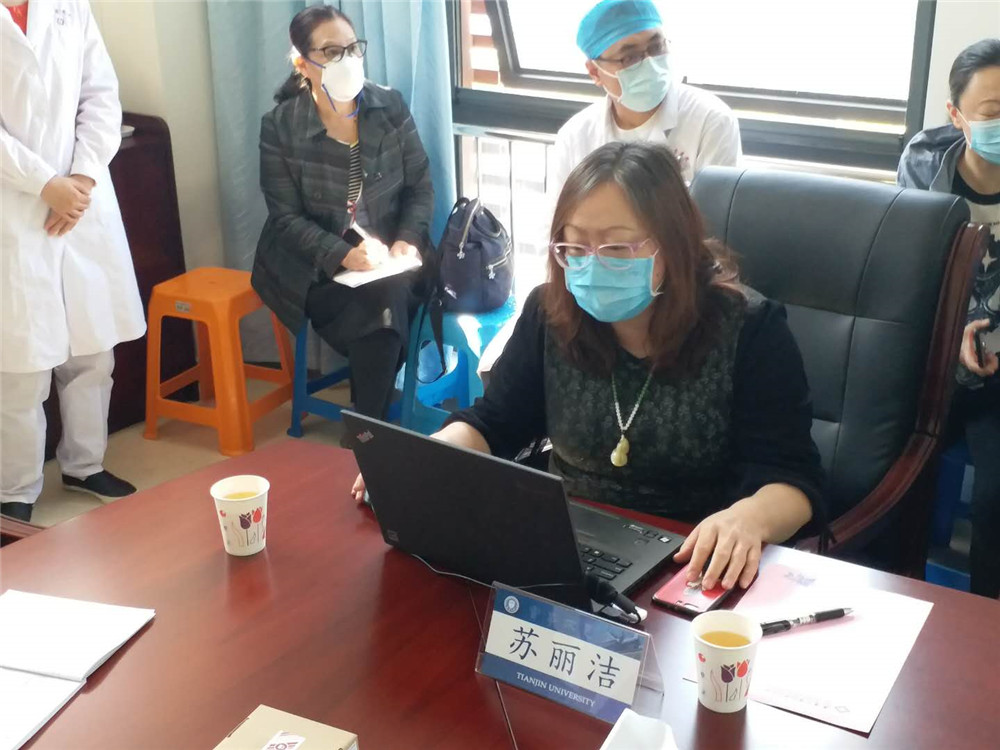 王红梅院长对海河医院专家团队在百忙之中前来天津大学医院传经送宝表示了衷心的感谢。她说,天津大学5月6日首批学生返校在即,校园内疫情防控工作任务艰巨,上级医院的专业高水平培训对增强大家的防护意识和技能,扎实做好复工复课后的疫情防控工作具有重要意义。海河医院医务科科长黄淑萍强调,作为天津大学的附属医院,有义务对校园疫情防控工作进行培训和指导,非常愿意为校园师生的健康安全做出一份贡献。