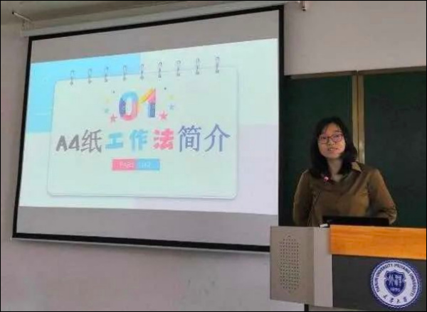 本次研讨会由周艳副院长带来“A4纸工作法”的管理工作经验分享。周艳副院长首先介绍了为什么选择“A4纸工作法”这一选题,金东寒校长曾在学校干部大会上多次倡导“A4纸工作法”,《A4纸工作法》是三木雄信(日本)总结的一份实用性和适用性很强的“提高效率工作手册”。接着周艳副院长为大家详细介绍了“A4纸工作法”的工作核心,即计划性、流程化、简洁化,并结合国际化示范学院工作的实际,重点介绍在大型会议组织、人事管理和科研管理等工作中采用“A4纸工作法”的具体案例。最后周艳副院长从提高工作效率、便于信息查找和学院工作沟通、提升个人工作能力等方面分享了实践“A4纸工作法”后的工作体会。