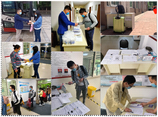 根据学校的统一安排,前沿院联系了负责三站一场接站的公交集团,对首批返院的学生设置了老校区校内接站点,保障学生自校内返回武清的无缝对接及路途中的平安;针对第二批返院学生,按照学校的检测消杀要求,在宿舍区设置行李统一消杀点位,严格进行健康检查和登记后,方可入住。