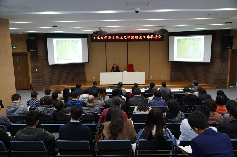 本站讯(通讯员 梅迎春)4月10日,天津大学马克思主义学院建设工作推动会在33教学楼报告厅举行。会议邀请了北京大学陈占安教授做主题报告,天津大学马克思主义学院建设工作领导小组成员单位负责同志,马克思主义学院班子成员及全体师生100余人出席推动会,会议由马克思主义学院党委书记徐斌主持。