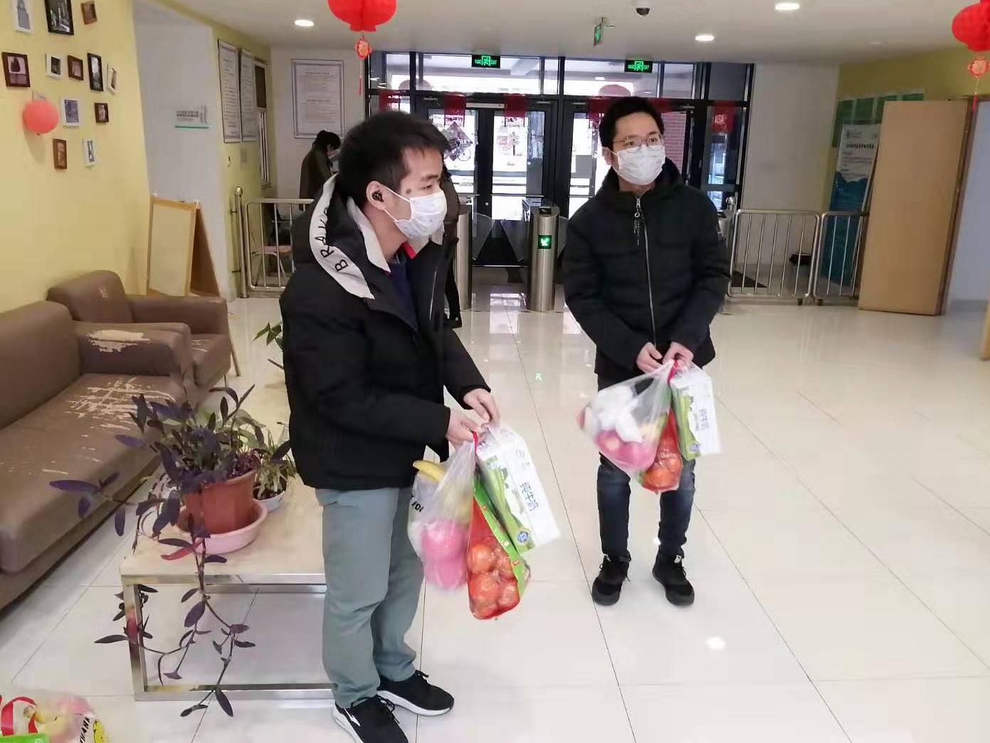 本站讯(通讯员 任畅)2月2日,机械工程学院副院长曹树谦、党委副书记刘岳来到格园1斋通风良好的一楼大厅,看望慰问了学院留校的8名学生,并为同学们带去了慰问品牛奶和水果。