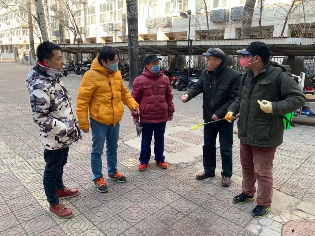 国际教育学院宿舍管理科老师指导楼宇工作人员正确使用消毒液并布置日常消杀工作
