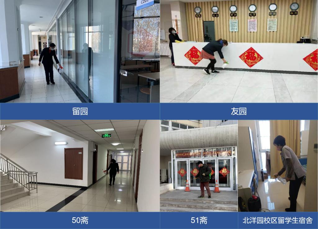 按照学校相关工作要求,国际教育学院对全校留学生进行摸底排查,掌握在校留学生的基本情况,并对所有在校留学生进行每日体温监测,并做好记录。同时,对出入楼宇的留学生情况进行登记,对进入楼宇的留学生监测体温并记录。为保证在校留学生的正常生活,消除留学生的恐慌心理,学院克服困难,在学校相关部处的支持下,为每栋宿舍楼配备部分防护用品,并嘱咐学生做好特殊时期的安全防护和个人卫生。同时,在各楼宇摆放“天津大学留学生温馨提示”宣传展架,告知留学生学校各项防控措施布置情况,留学生通过短视频或者留言的方式反馈,“我们相信校园是最安全的”。宿舍管理科老师耐心指导楼宇工作人员使用消杀器具、配置消毒水,布置每日消杀工作并严格执行。由楼宇工作人员每日对楼宇及周边环境、教室、宿舍、公共区域等进行仔细消杀,保证留学生拥有健康安全的生活环境。