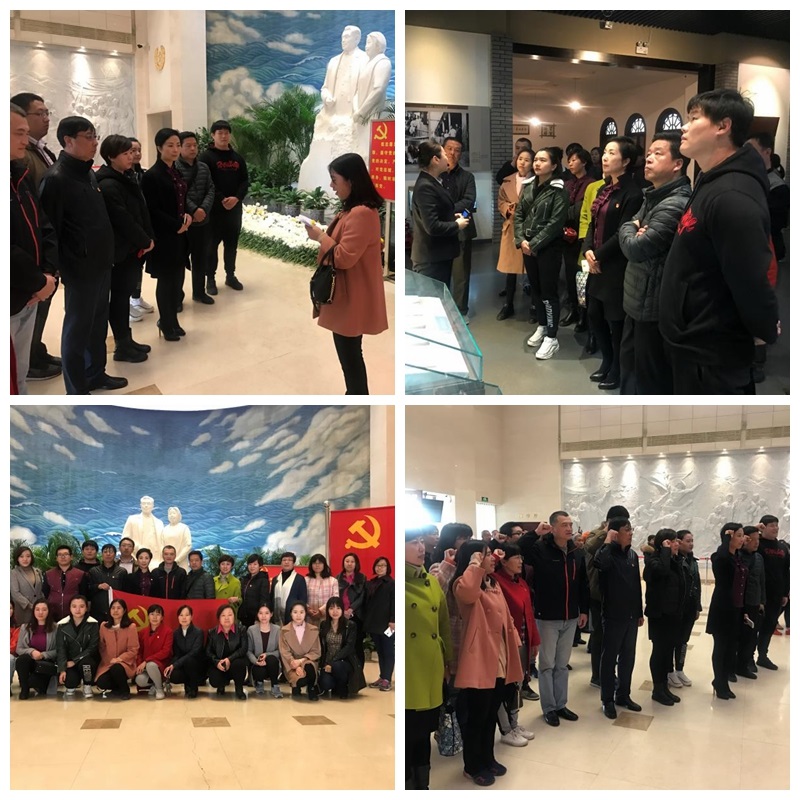 周邓纪念馆中,大家缅怀着两位伟人的丰功伟绩,面对党旗,党员们重温入党誓词,共同学习十九大精神。图书馆张慧老师还作为党员代表在党旗下抒发对党的热爱,表达不忘初心,永远跟党走的决心。