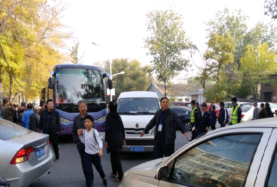 早晨7时20分许,附小师生在卫津路校区西门外湖滨道集结。由于正处在早高峰时段,接送师生的18辆大客车、上班的教职工车辆、停放在道路两侧的学生家长车辆……车水马龙,把湖滨道堵得水泄不通。门卫工作人员报告此事后,保卫处迅速抽调人力,在湖滨道沿线、西门入口、东门出口等重要节点加派人手,所有交通安保人员在10分钟内达到现场,疏导交通,确保接送师生的车辆、上班教职工的车辆都能顺利通行。在工作人员的疏导下,8时50分许,18辆大客车顺利从东门驶出。