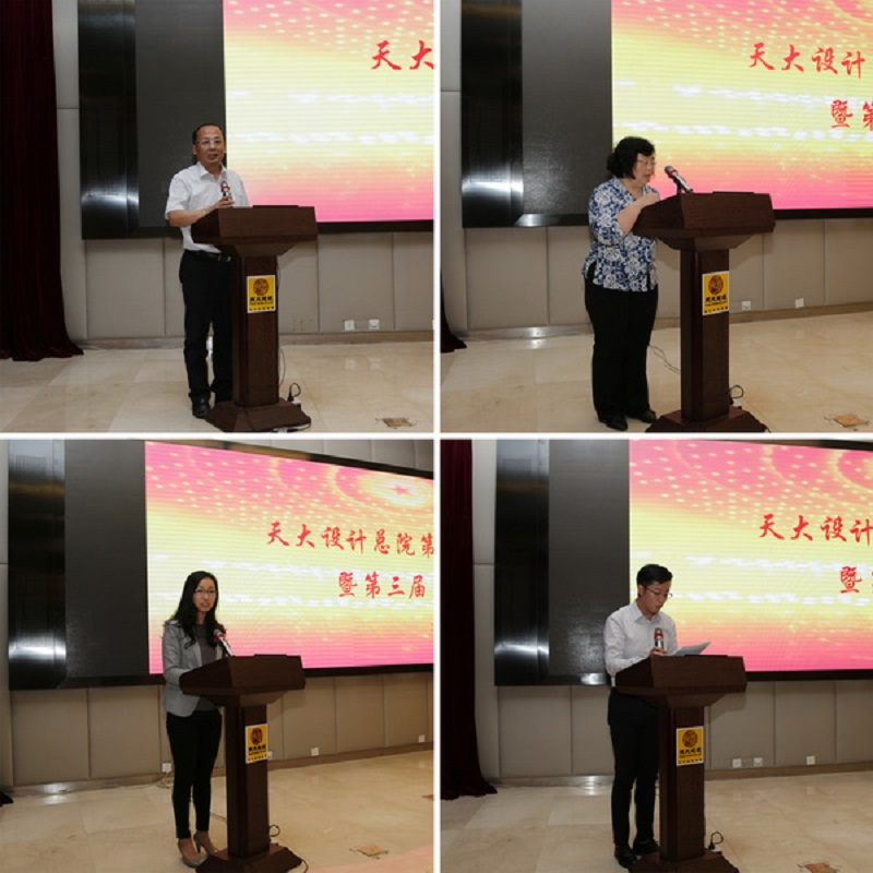 工作人员宣读天津大学工会《关于总院召开职工代表大会选举代表的请示》的批复后,全体与会人员审议通过了设计总院参加“双代会”代表候选人名单、《选举办法》及监票人名单,并在监票人的监督下以不记名投票方式差额选举出总院“天津大学第八届教职工代表大会”代表8名:李绍燕、吴放、陈昆、罗迪、郑伟、洪再生、祝捷、程万海(以姓氏笔画为序),总院“天津大学第十六次工会会员代表大会”代表5名:王建午、孟祥良、贾莉、高辉、窦玉斌(以姓氏笔画为序)。