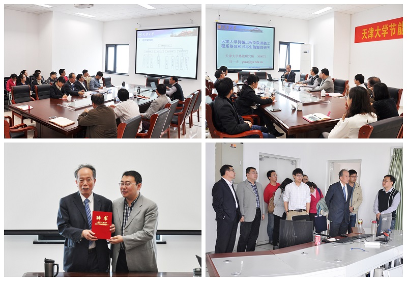 揭牌仪式结束后,一行人来到能源管理办公室进行“天津大学机械工程学院-后勤保障部能源管理座谈会”。首先由朱峰介绍了能源管理办公室基本情况。马一太做了题为《天津大学机械工程学院热能工程系热泵和可再生能源的研究》的报告,从专业层面上介绍了浅层地热能与太阳能的发展利用现状,并提出一系列技术突破点以合理优化新校区的热泵系统,使节能减排理念贯穿到整个能源站的日常运行中,真正做到全方位节能。之后,李梓为马一太颁发了“北洋园校区能源管理办公室高级顾问”聘书。他谈到,目前节能主要是管理节能和技术节能,未来是大数据的时代,节能的发展趋势是数据节能。他希望通过与机械工程学院的深度合作,将能源数据进行收集、整理、分析,基于统计预测制定节能方案,将我校做成示范推广到其他高校。随后,在座师生进行了能源管理、技术方面的经验交流。最后,全体师生共同参观了北洋园校区能源监测平台。