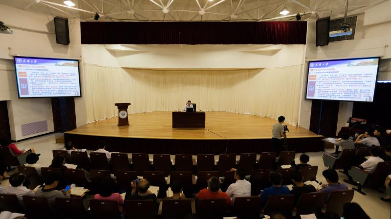 本站讯(记者 张昊 摄影 丁宇)5月10日,天津大学在卫津路校区大学生活动中心一层报告厅召开推动“两学一做”学习教育常态化制度化暨基层党支部书记论坛启动会,校党委书记李家俊作“两学一做”学习教育常态化制度化启动暨“牢固树立‘四个意识’”专题辅导报告。各院级党组织书记、副书记,在职教工党支部书记和学生党支部书记400余人聆听了报告。大会由党委副书记、纪委书记孙广平主持。