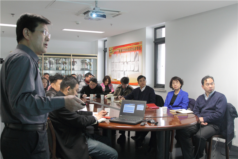 随后,体育部党总支书记、主任韩文俊从天津大学体育工作现状、兄弟院校体育工作调研对比分析、天津大学学生课外活动问卷调查、存在的问题及解决对策等方面汇报了学校当前体育工作的总体情况。他表示,将按照学校要求,制定天津大学体育工作规划,并会同有关部门抓好落实。会上,体育科学研究所、高水平竞训中心、体质健康测试中心、群体中心等部门负责人一同就体育教学、运动训练、师资培养以及群体工作等进行了汇报。
