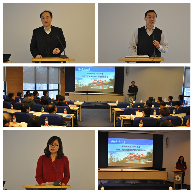 校长助理、后勤保障部部长刘宁作后勤保障部工作报告。报告总结了2016年后勤保障部的整体工作,并提出了2017年的工作计划。他讲到,2016年后勤保障部工作在继续推动社会化改革、强化安全生产管理、强化主动服务意识、提升后勤保障水平、加强党组织建设等工作中取得了一定的成绩,受到学校领导、在校师生、兄弟院校和社会各界的一致好评。同时,他对2017年的工作提出要求,要适应学校“双一流”建设,继续深化改革,主动服务,保障安全,加强党建工作和文化建设。并鼓励大家要认真总结2016年的工作,通过述职述廉与兄弟科室互比互看,在2017年的工作中取长补短,继续提升服务品质,做好本职工作,促进后勤事业的发展。