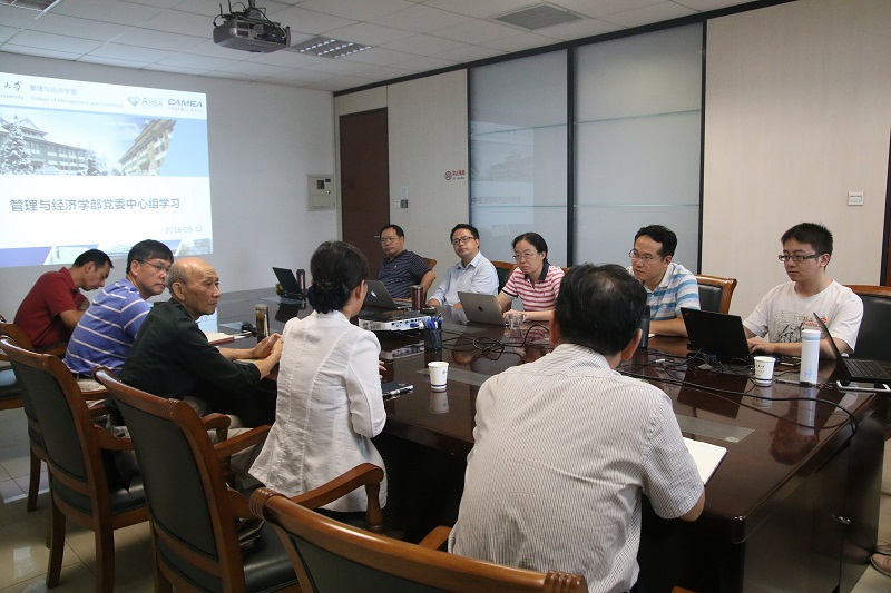 本站讯(通讯员 李岩)9月12日下午,管理与经济学部召开党委中心组学习。本次学习是管理与经济学部党委为进一步落实学校党委“两学一做”学习教育的部署,开展好第二阶段学习先进典型模范事迹,围绕高校立德树人根本任务做合格党员开展的专题学习,邀请了2016年“全国优秀党务工作者”获得者,药学院党委书记冯翠玲做先进事迹报告。管理与经济学部党建督导员杨科琳也应邀参加了本次会议。