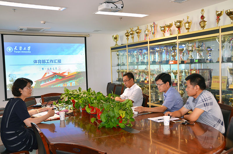 体育部相关负责人分别就体育课教学、学生体质健康测试、群体活动、普通运动队和高水平运动队建设等工作从目前现状、存在问题和困难、未来发展思路等方面进行了详细汇报。