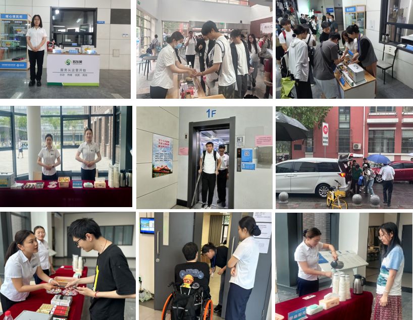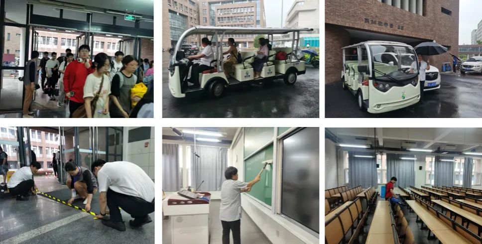 温情守护,传递温度。为全方位服务考生,各考点均设立了便民服务台,贴心配备2B铅笔、电池、橡皮、纸杯、热水、纸巾、医药箱等物资。服务人员更以细致关怀传递温暖:为衣物淋湿的考生送上干爽工装;主动搀扶行动不便考生,开启电梯绿色通道;为走错考场的考生协调专车节省转场时间;冒雨为运送试卷的老师撑起爱心伞;提前为坐轮椅考生准备活动桌椅,帮助其提前进入考场……这些点滴行动,生动诠释了后勤基建部“师生为本”的服务理念,赢得了广大考生的由衷赞誉。