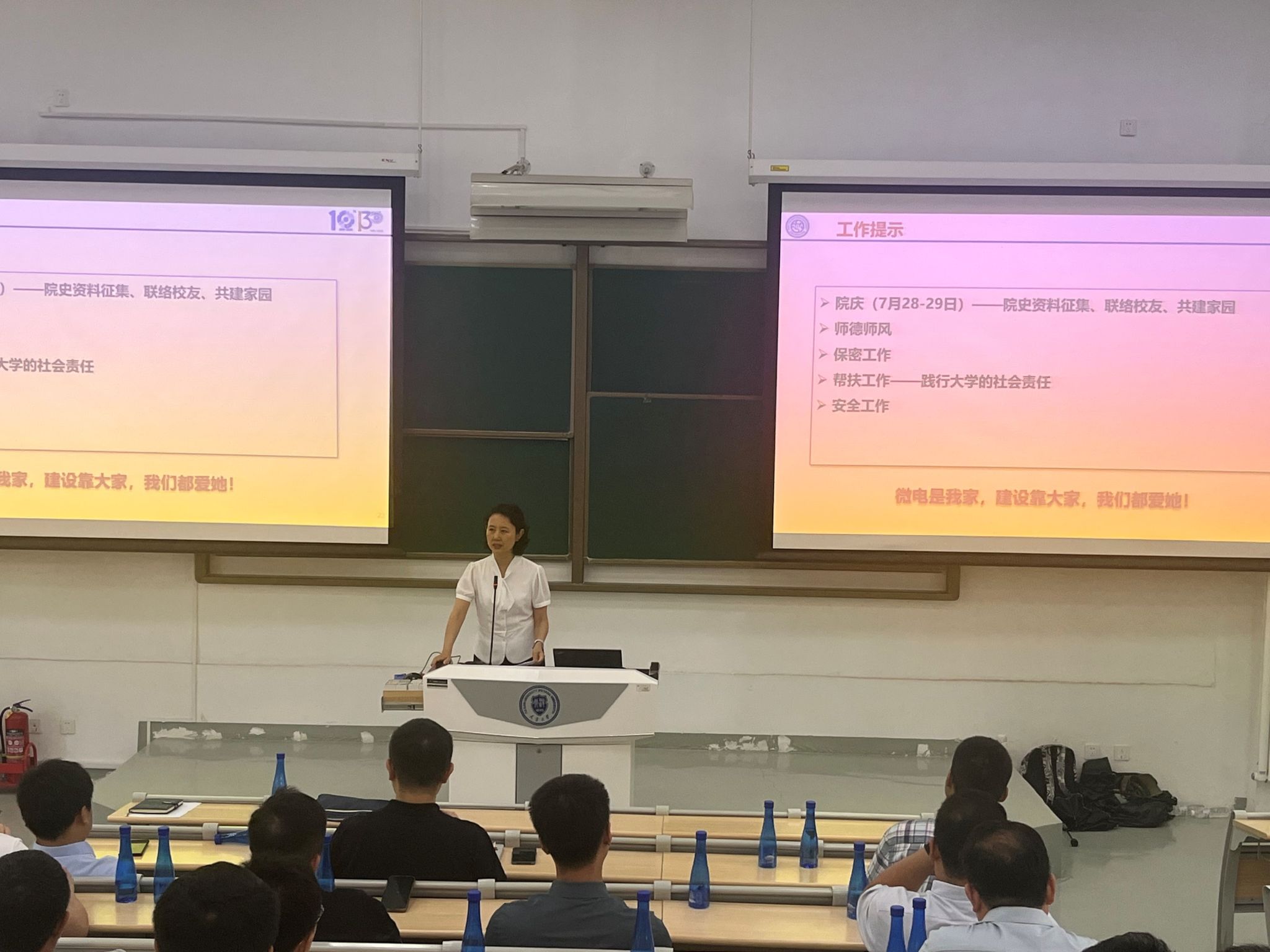 为进一步贯彻教育强国建设要求,落实学校重要工作部署,推进微电子学院事业发展,7月2日上午,微电子学院召开2025年第二次全体教职工大会,学院领导班子及全体教职工参加会议,会议由党委副书记韩旭主持。