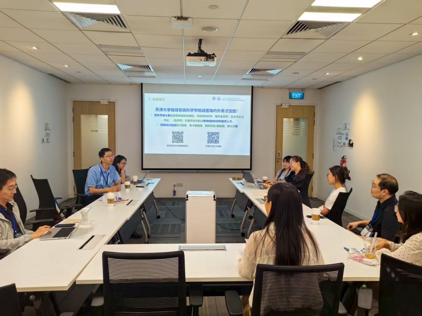 活动期间,李思亮赴新加坡-苏黎世联邦理工学院中心(SEC)开展了专题宣讲会,向该中心、新加坡国立大学、芬兰赫尔辛基大学等高校及研究院所的青年学者详细介绍了地科院的发展成效、人才招聘需求和职业发展路径,并和与会学者进行了交流。多位学者现场登记信息,希望将来有机会加入天津大学地科院。