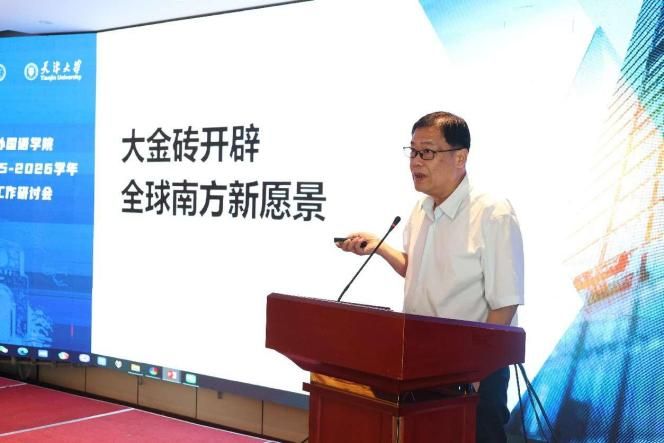 随后,外国语学院英才教授、全球南方研究院执行院长王战带来了题为“大金砖机制开辟全球南方新愿景”的主旨报告。王战教授从当前国际格局出发,指出世界正处于百年未有之大变局,单边主义与保护主义盛行,南北差距进一步拉大。在此背景下,全球南方国家正以群体性崛起的姿态,日益成为不可忽视的力量。他从历史视角梳理了“大金砖”机制的演变路径,并强调“大金砖”并非传统意义上的地缘政治联盟,而是一种包容性、非对抗性的伙伴关系网络,其目标是为全球南方争取更大代表性与话语权,推动全球治理体系改革。