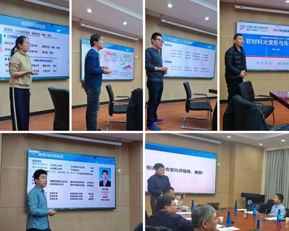 在随后于11月13日举办的力学学科分论坛中,六位青年教师展示了各自的代表性研究成果。刘洋以“软材料大变形与失稳力学”为题,探讨了软物质材料在极端载荷下的力学行为。马志赛聚焦“航天结构动力学反问题”,为航天器结构设计与安全保障提供了新思路。许超宸围绕“微纳界面实验力学”,介绍了微观尺度下界面力学性能的测试与分析方法。方维紧扣“生物材料表界面力学与仿生”主题,揭示了自然材料中蕴含的力学智慧与仿生潜力。谢海妹汇报的“实验固体力学”,展示了先进实验方法在固体力学研究中的应用创新。赵磊则从“流动稳定性理论与高超声速边界层转捩”出发,探讨了高速流动中的基础力学问题。与会专家充分肯定了报告人在基础理论与力学方法方面取得的成绩,并从报告的逻辑性、完整性和创新性等维度逐一进行了针对性点评。