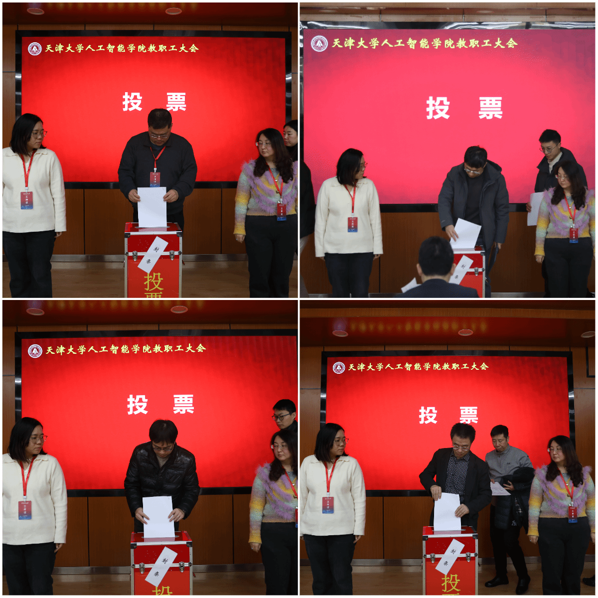 教职工大会选举王龙标为人工智能学院教职工大会主任、赵娜为副主任。会议选举王龙标、王赞、杨雅君、赵娜为人工智能学院参加天津大学第十届教职工代表大会代表。