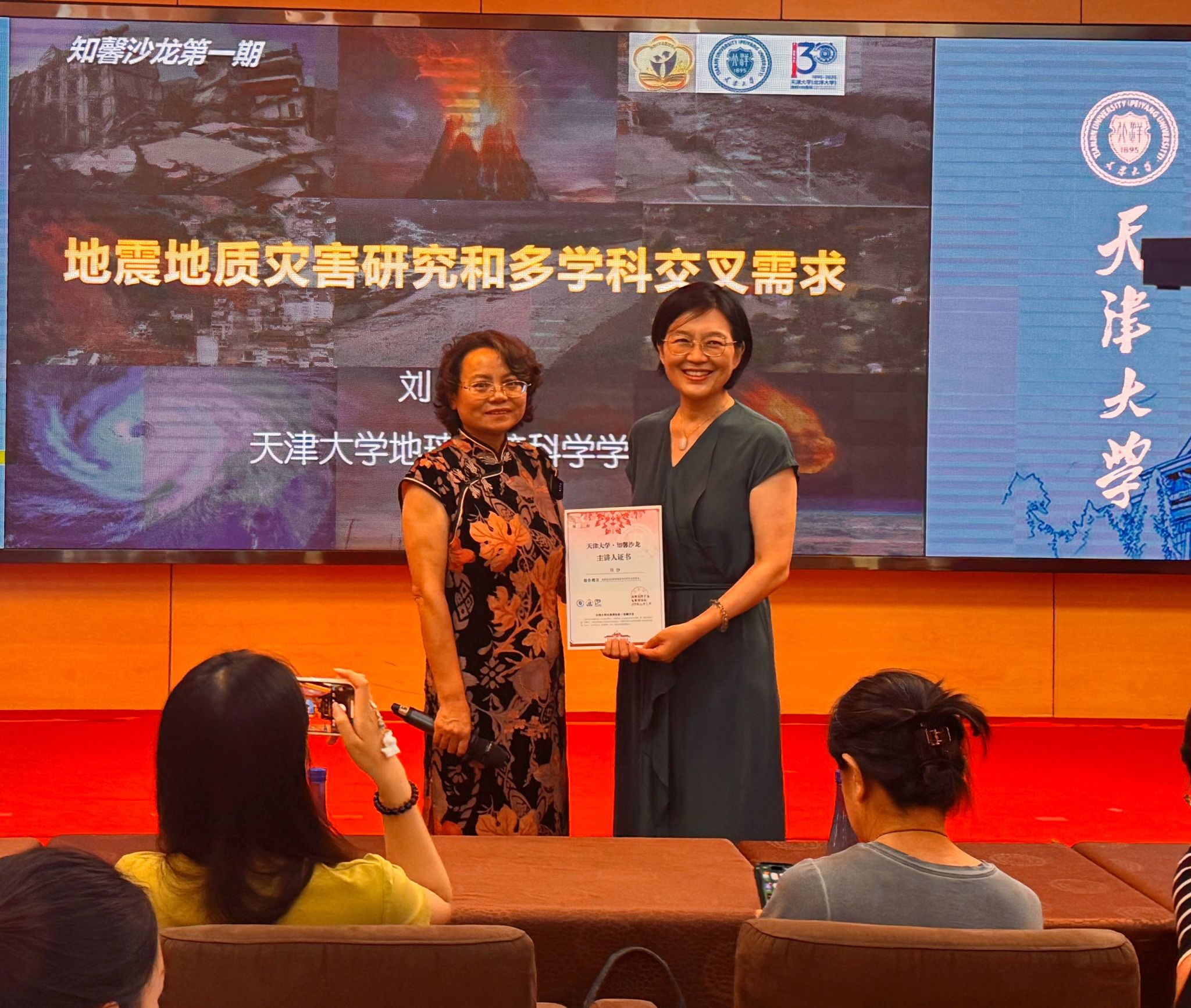 活动特别邀请天津大学女教授协会理事会会长、地球系统科学学院讲席教授刘静担任首期主讲嘉宾。刘静教授深耕青藏高原活动构造、地震与构造地貌研究领域多年,科研成果斐然。她曾荣获青藏高原青年科技奖,并在多个重要学术机构兼任要职,学术影响力深远。活动现场,刘静教授以《地震地质灾害研究和多学科交叉的需求》为题,带来一场精彩的学术报告。她紧密结合自身丰富的科研实践,深入剖析多学科融合对地质灾害研究的强大推动作用。从理论阐述到实际案例分享,内容详实且极具启发性,引发了现场听众的广泛关注与热烈讨论,更为跨学科研究开拓了全新思路。