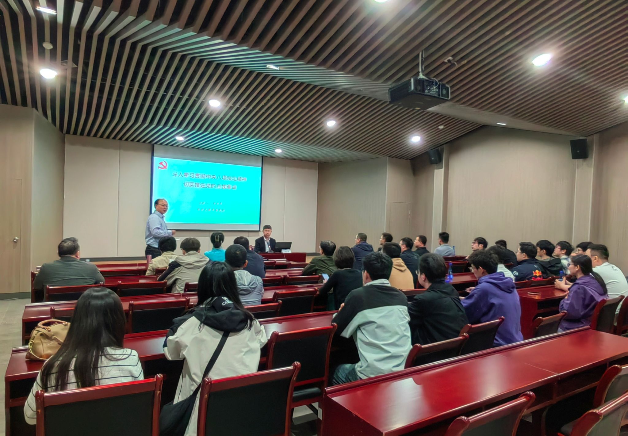 活动邀请了中共天津市委党校二级教授、政治学与统战理论教研部主任张亚勇,为师生党员进行专题党课辅导。张亚勇教授以《深入学习贯彻中央八项规定精神 切实推进党的自我革命》为题,从历史方位、政治意义和现实需求三个维度阐述了开展学习教育的重大意义,重点从中央八项规定的主要内容、中央八项规定精神的深化拓展两方面进行了讲解,同时结合具体典型案例,针对作风建设的实践路径与制度体系进行了深入剖析。