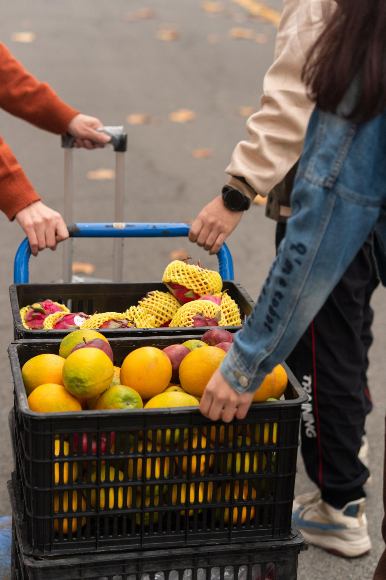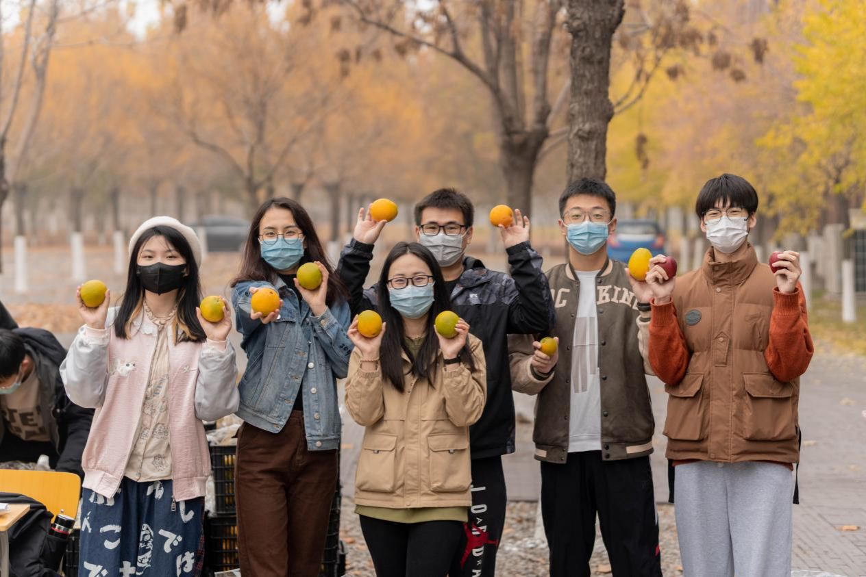 这组摄影作品是2022年11月,在天津大学材料学院的分发现场拍摄的。21级硕士生材加班党支部的几位志愿者帮忙登记、分发水果给各个班级代表,并最后领取了自己班级的份额。过程中同学们热情积极,任劳任怨,在深秋的清晨传递着温暖。