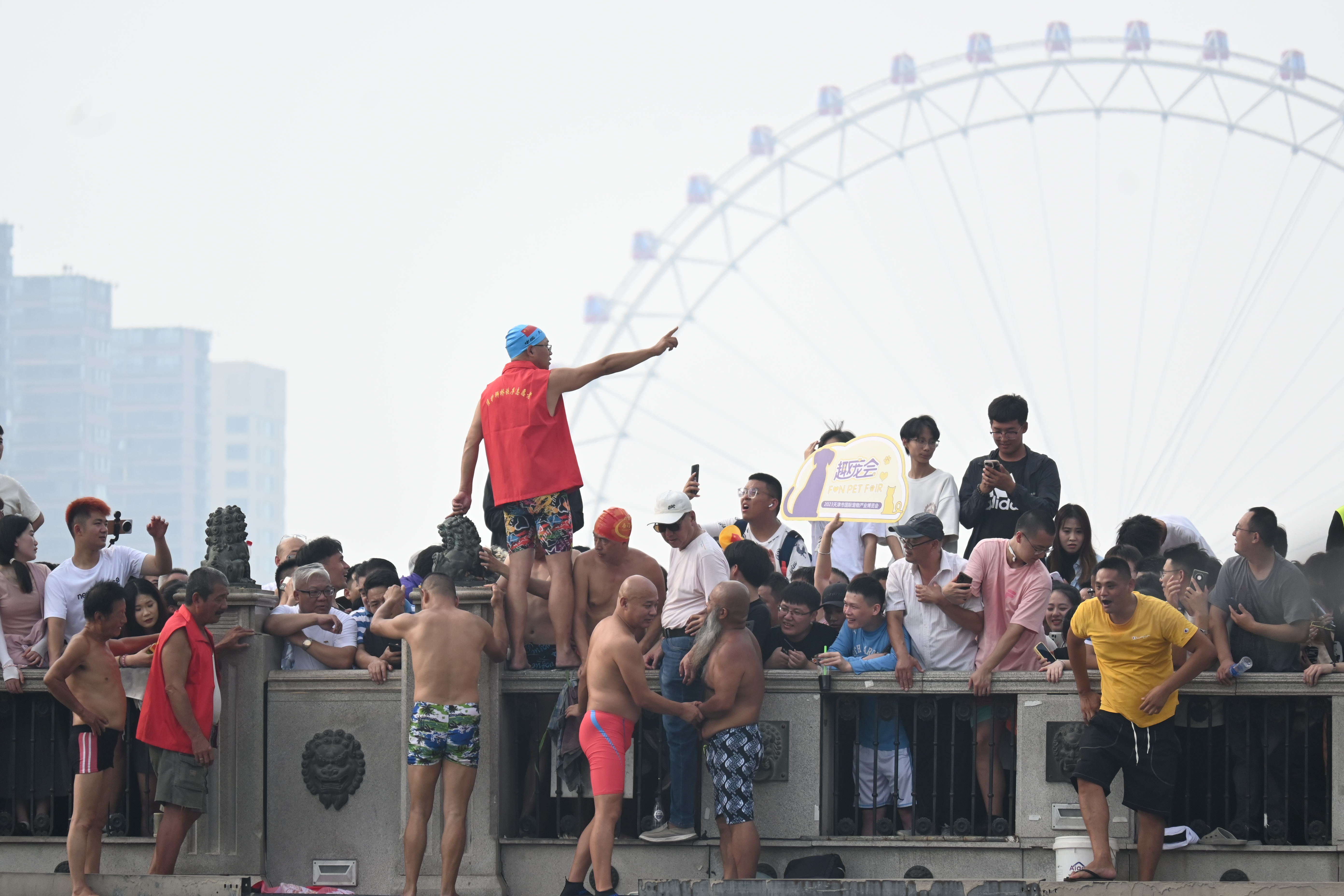 狮子林桥上,热爱跳水的退休大爷纵身跃入海河,数十年如一日,健康的体魄、乐观的精神深深感染了围观的群众。