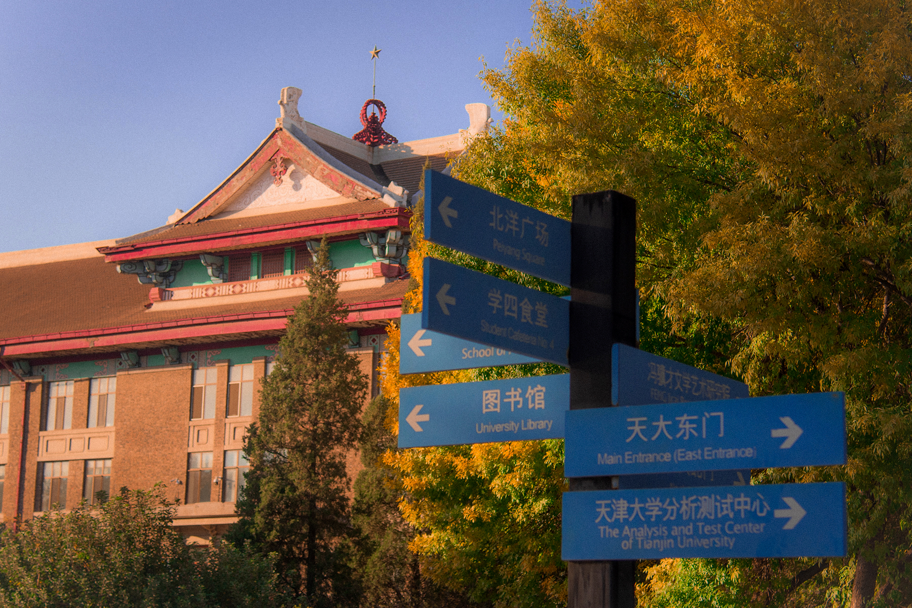 照片记录了天津大学、颐和园、北京大学金色的秋天。
