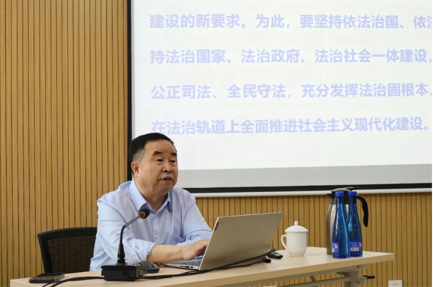孙佑海分享了题为《认真学习党的二十大精神 深刻领会治国理政的新理念新思想新战略》的报告,共同学习了二十大报告关于法制的重要论述。孙院长指出,报告将深化行政执法体制改革,全面推进严格规范公正文明执法的重点,旗帜鲜明地放置在“加大关系群众切身利益的重点领域执法力度”上,充分体现了党以人民为中心的执政理念。他围绕习近平总书记带领全党全国人民应变局开新局提出的十个新理念新思想新战略进行了深度解读,他表示“江山就是人民,人民就是江山”是习近平总书记“以人民为中心”思想的生动体现,展现出总书记始终把人民放在心中最高位置的重要立场。