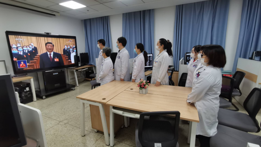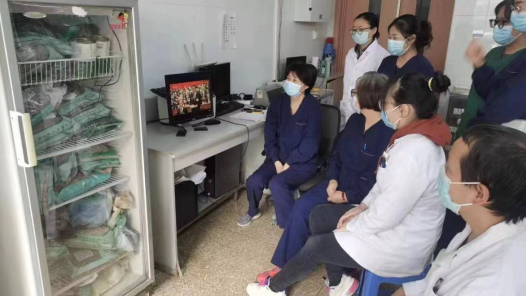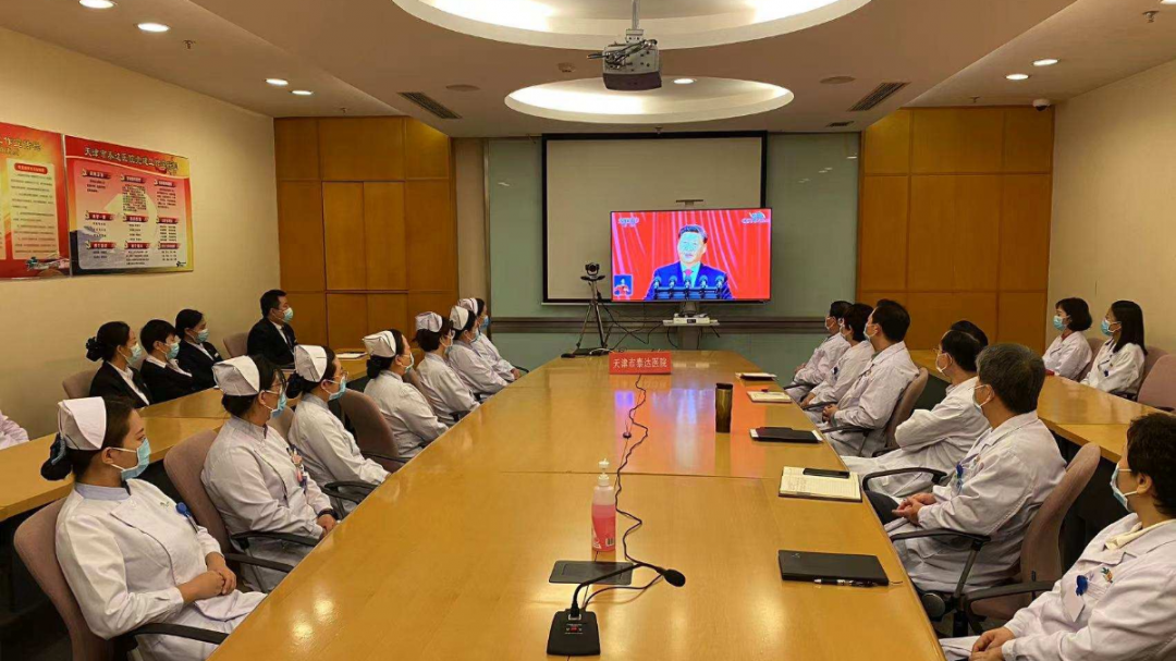 天津大学多家附属医院及医学中心也纷纷组织党员同志采用各种形式观看开幕会盛况。