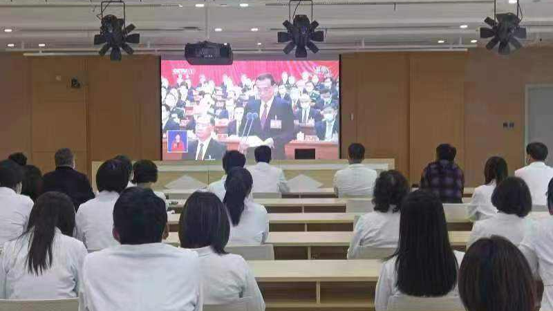 学校机关代表和医学部领导班子成员及师生党员近200人在医学部教学楼仁是厅集体观看开幕会。此外,其他师生也通过电视、网络、广播等多种方式收听收看,认真学习领悟大会精神。