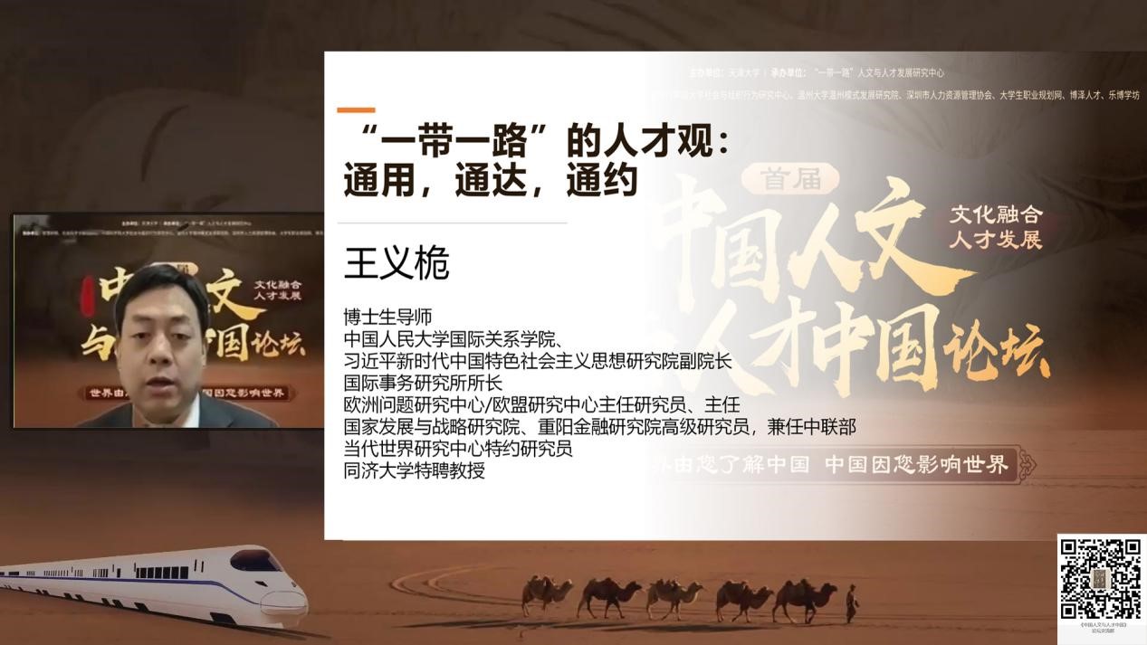 本站讯(马克思主义学院供稿)为促进“一带一路”沿线文化融合和国际型人才发展,促进人才强国战略实施,促进培养具有“家国情怀”之心、“立德树人”之本的高质量人才就业,3月21日上午9时,由天津大学主办,经国家民委审批成立的“一带一路”人文与人才发展中心承办,智慧树网、宁夏大学、社会科学文献出版社、中国科学院大学社会与组织行为研究中心、温州大学温州模式发展研究院、深圳市人力资源管理协会、大学生职业规划网、博泽人才、乐博学坊等单位协办的首届“一带一路”《中国人文与人才中国》线上论坛隆重拉开序幕。