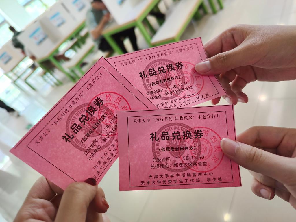 新学期为弘扬勤俭节约精神,天津大学开展了“厉行节约,从我做起”主题宣传月系列活动,推出多种活动来鼓励、引导同学们节约粮食。除了“光盘换礼”活动,学校和各学院还陆续推出了“厉行节约”主题海报设计大赛、“光盘”主题宣传画展览、“晒空碗、拒绝浪费”照片征集等丰富多彩的主题宣传活动,倡导学生从当下开始,从珍惜一粒米、一滴水的小事做起,逐渐形成勤俭节约的良好风尚。