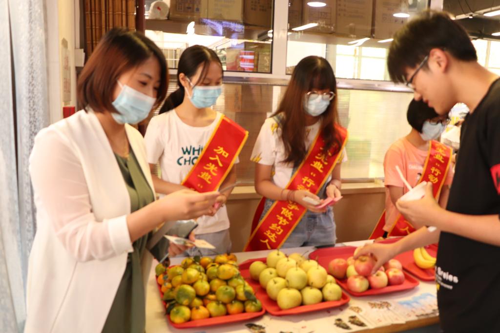 “以前,看着那些没吃完的食物被倒进垃圾桶里,说实话很心痛。‘光盘换礼’活动换来的不只是水果,更是我们心中的节约意识与‘光盘意识’。”刚在收餐处放好吃光了的餐盘的化工学院大四学生朱红淇这样说。