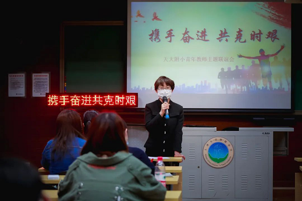 本站讯(通讯员 王曌 郑炎琼)为深入学习贯彻习近平新时代中国特色社会主义思想和党的十九大精神,进一步加强青年教师的思想政治引领,不断创新工作内容和形式,在“五四”青年节到来之际,小幼医工作部组织各部门开展青年联谊会系列活动,旨在凝聚青年力量,共筑家国情怀。4月29日,附小在电化教室召开了“携手奋进,共克时艰”青年教师主题联谊会。小幼医工作部副部长、党委副书记刘津出席了会议。