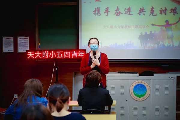 随后,几位青年班主任、科任教师代表分别分享了自己的成长历程和工作感悟。在“停课不停学”期间,附小每一位青年教师充分发挥党的助手和后备军作用,展现担当精神。青年班主任除了要完成教学任务,还需承担班级学生的德育工作。疫情期间,上传下达、每日问候已经成为了他们工作的常态,在教学过程中时刻不忘关注学生的思想品德教育,学习周恩来精神、诵读经典诗文、清明节祭英烈.......他们在用语言与行动引导着每一名学生奋发向上。在这段值得铭记的岁月里,科任老师们为了让学生们静心学习、在非常时期采用各种现代教育手段,以“生命守护者”的专业职责与定力,保护孩子们的身心健康、保障切实有序的居家学习,成为了学生自主学习的陪伴者,优质学习资源的供给者,全面融合发展的培育者。疫情防控期间,附小还充分发挥少先队阵地的引领作用,同时把微信公众平台作为学校的宣传窗口,坚持做到理想信念教育、家国情怀涵养与健康知识普及同步发力,传递着积极的正能量。