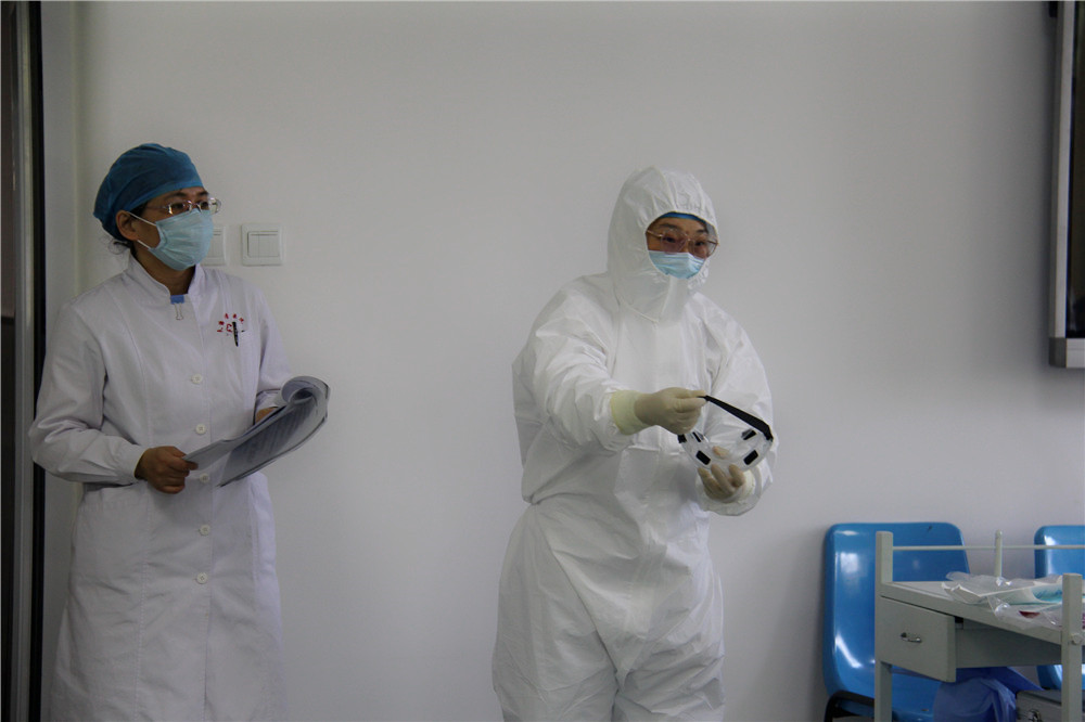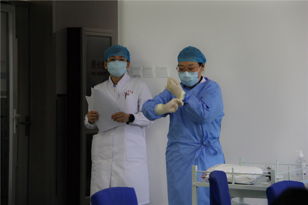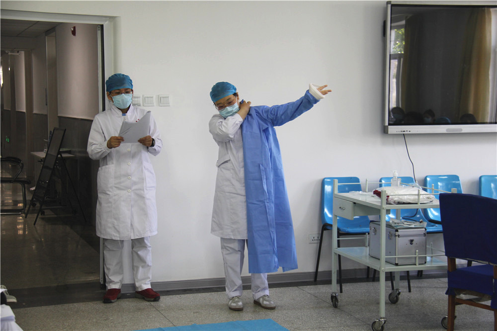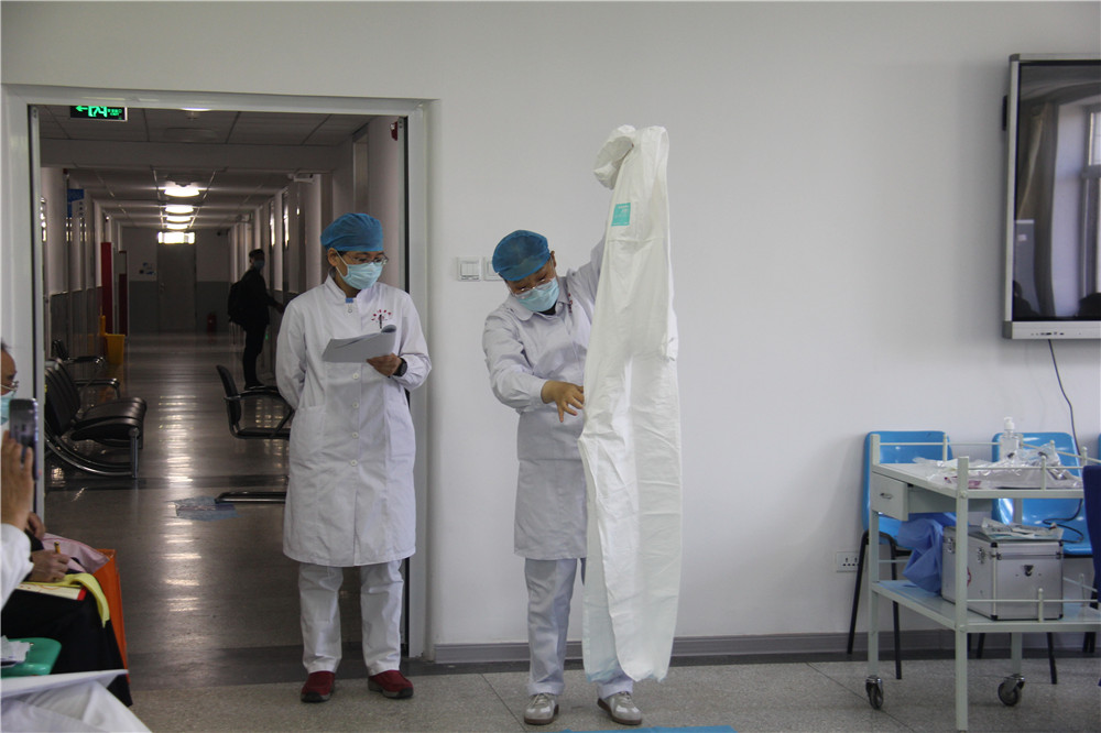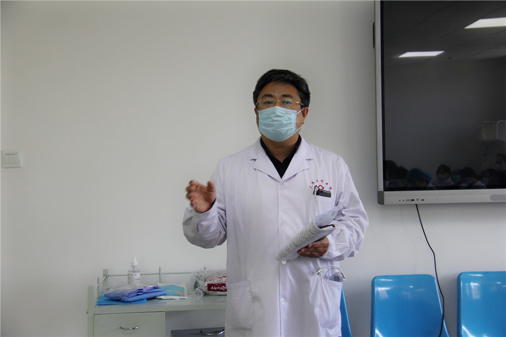 医疗二部主任丁嵘主治医师从新冠肺炎的诊疗流程、应急预案的各项流程、转运司机的个人防护、汽车的消杀等方面进行了全面培训。此外,培训会上,护理部主管护师李跃爱同志为参会老师详细地讲解与演示了个人如何预防感染、穿脱防护服的正确流程等具体防护知识,让大家做到人人知流程,岗岗懂处理。