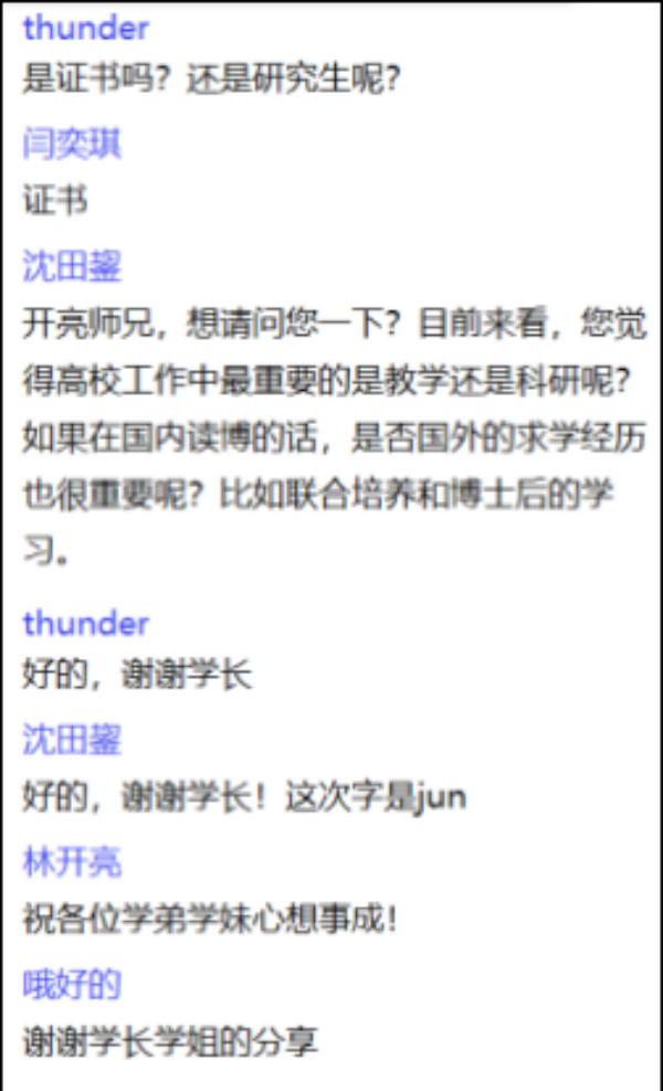 图 互动答疑环节参会学生通过语音、文字向分享嘉宾提问